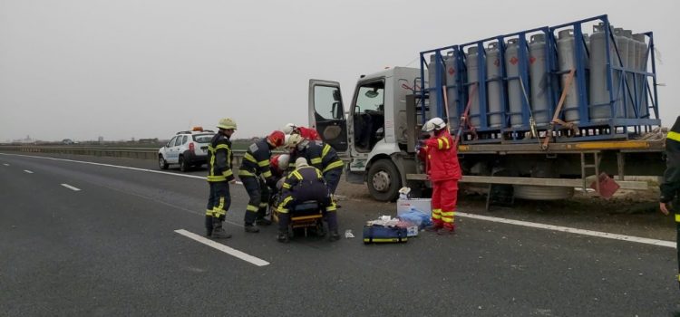 Un accident a avut loc în această dimineață pe autostrada A1. Autocamionul era încărcat cu 140 butelii de propan, din aceste butelii 95 s-au răsturnat în șanțul de pe marginea drumului.