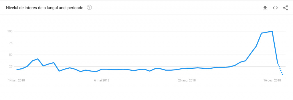 Sursa: google trends (1 decembrie 2018 – 3 ianuarie 2019) – keyword „cadouri”