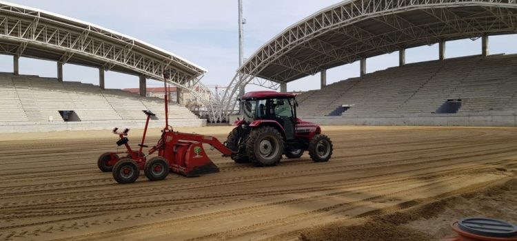Zilele acestea Firma SC Rulouri de gazon SRL, cea care a câștigat licitația pentru refacerea gazonului de pe noua arenă, a reluat lucrările de pregătire a terenului pentru montarea gazonului. Vă reamintim faptul că suprafață totală ce urmează să fie amenajată este de 9.840 mp. Aceasta va fi împărțită în două zone distincte, respectiv spațiu de joc cu o suprafață gazonată de 8.311 mp şi zonă perimetrală de 1.529 mp. Noul gazon va avea o instalaţie de încălzire şi un sistem de irigare, aceste investiții fiind asumate de Primăria Arad.