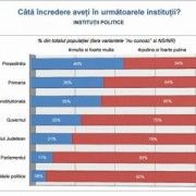 Conform Barometrului INSCOP — Adevărul, clasamentul încrederii în instituțiile politice interne este condus de Președinție cu 46,3% încredere multă și foarte multă (față de 48,9% în iulie 2015), urmată de Primărie cu 36,3% încredere multă și foarte multă (35,4% în luna iulie 2015), se arată într-un comunicat transmis marți AGERPRES.