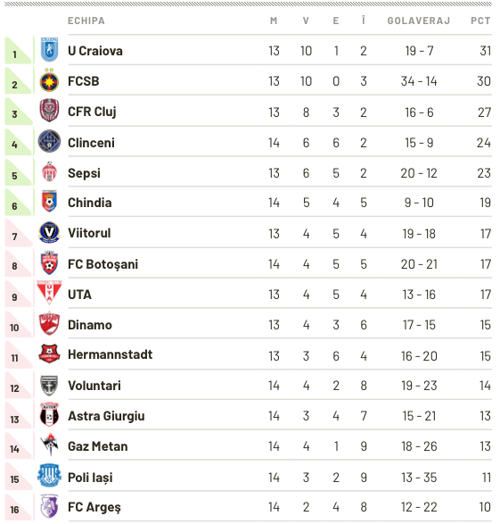 Liga 1, etapa a 14-a: